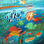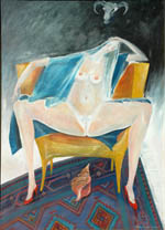 above: Seated Nude [oil on canvas] above: Victim [oil and timber on canvas] above: Waiting for George [oil on canvas] above: Tropical Reef [oil on canvas]