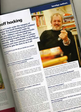 Geoff writes a regular nostalgic opinion piece for the Bendigo Magazine, a glossy lifestyle publication published in his hometown and has contributed essays to the Journal of Australian History and introductions to the works of others.